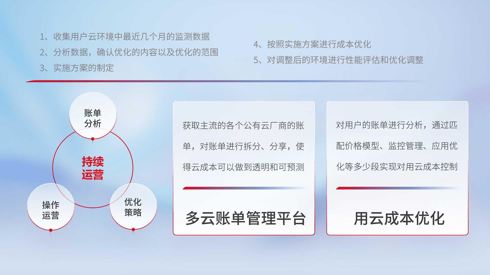 运用智能化工具分析云资源,,,提供日常费用可视化工具,,,,自动账单拆分,,成本优化云上费用,,,降本增效。。。。
